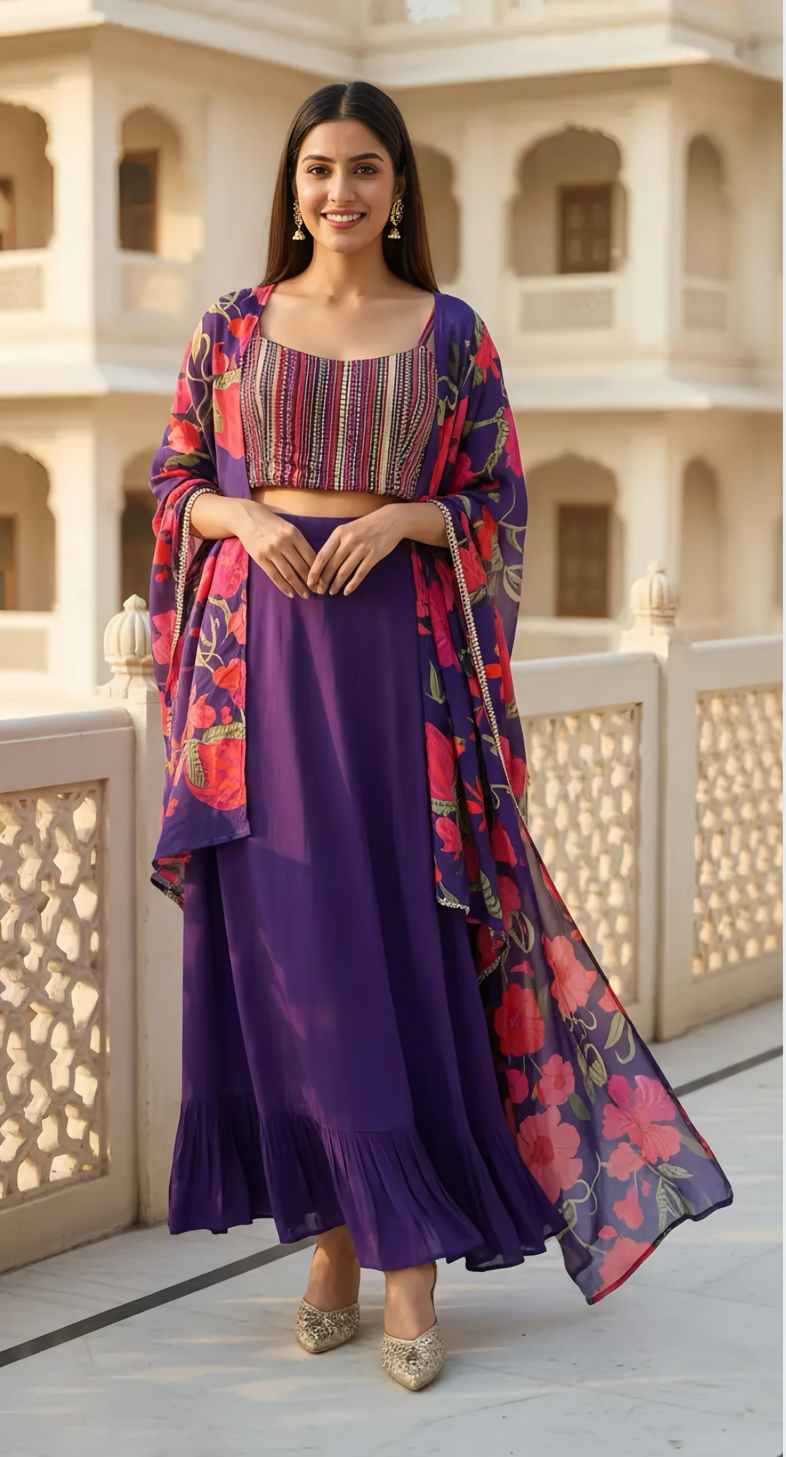 ✨ Sun-kissed glam meets festive flair ✨ Dive into celebration mode with this dreamy ensemble—featuring a hand-embroidered crop top adorned with sippi and cut dana work, layered under a mirror-finished shrug that sparkles with every move. Paired with a mermaid-style pleated georgette skirt that flows like a breeze, it's the perfect pick for poolside parties or haldi rituals where tradition meets trend 💛🌊 #HaldiReady #PoolsideGlam #MirrorMagic #MermaidVibes #DesiChic