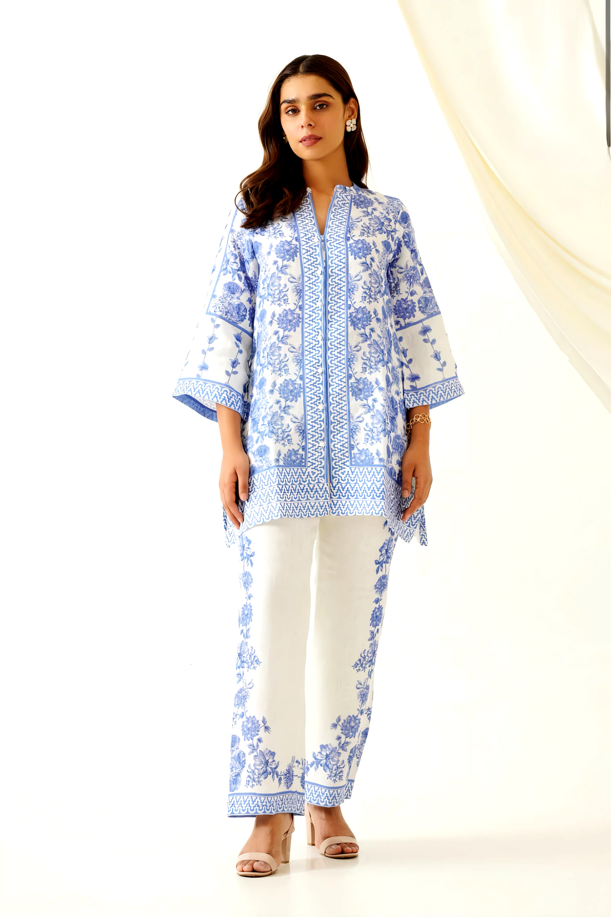 Crafted from luxurious imported linen and soft cotton, our Beautiful Co-Ord Set effortlessly combines comfort and style. The beautiful blue and white color palette adds a touch of luxury, making it the perfect addition to any fashionable wardrobe. Elevate your style with this must-have piece.