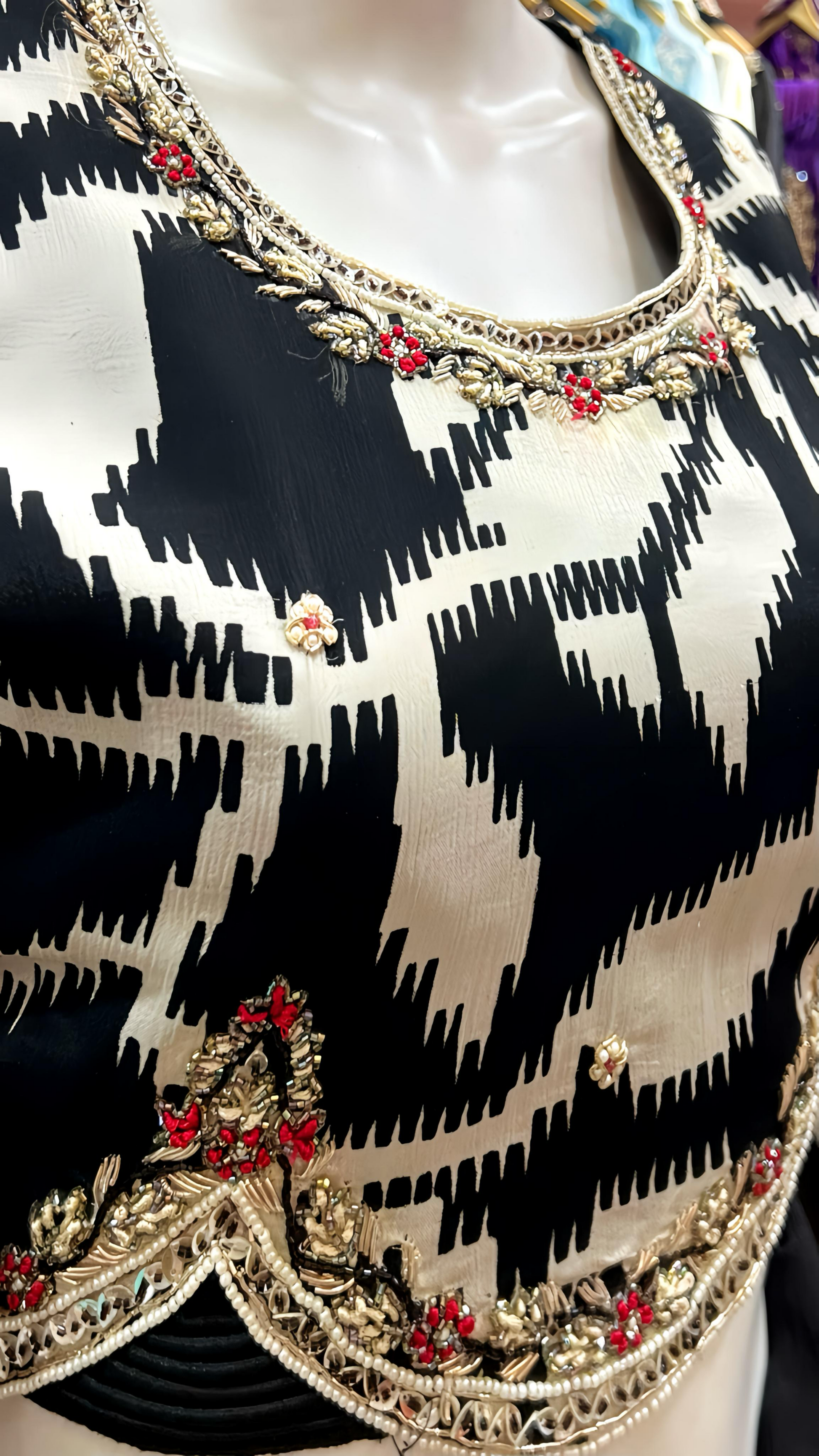Step into contemporary style with this trendy drape skirt set featuring a chic crop top and elegant dupatta, perfect for the modern girl who loves to make a statement. Affordable yet stylish, this versatile ensemble effortlessly blends traditional charm with modern flair for any occasion.