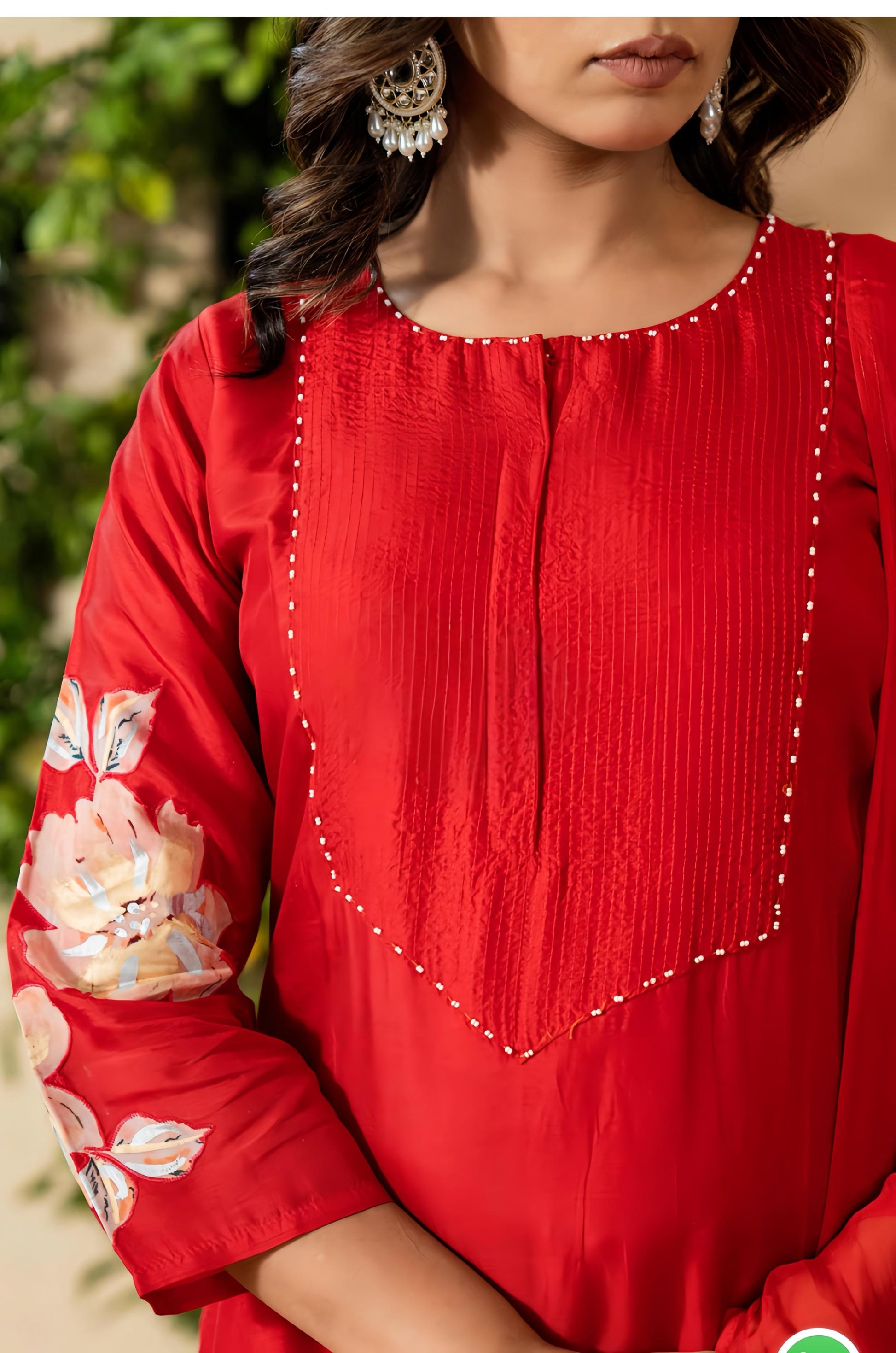 Embroidery: Intricate hand embroidery graces the neckline and sleeves, adding artisanal richness.