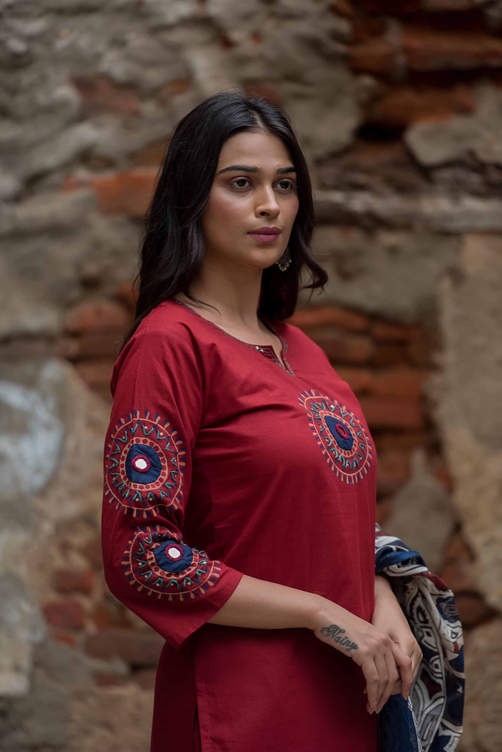 Hand embroidery enhances the neckline, sleeves, and hemline, making each piece truly one-of-a-kind.