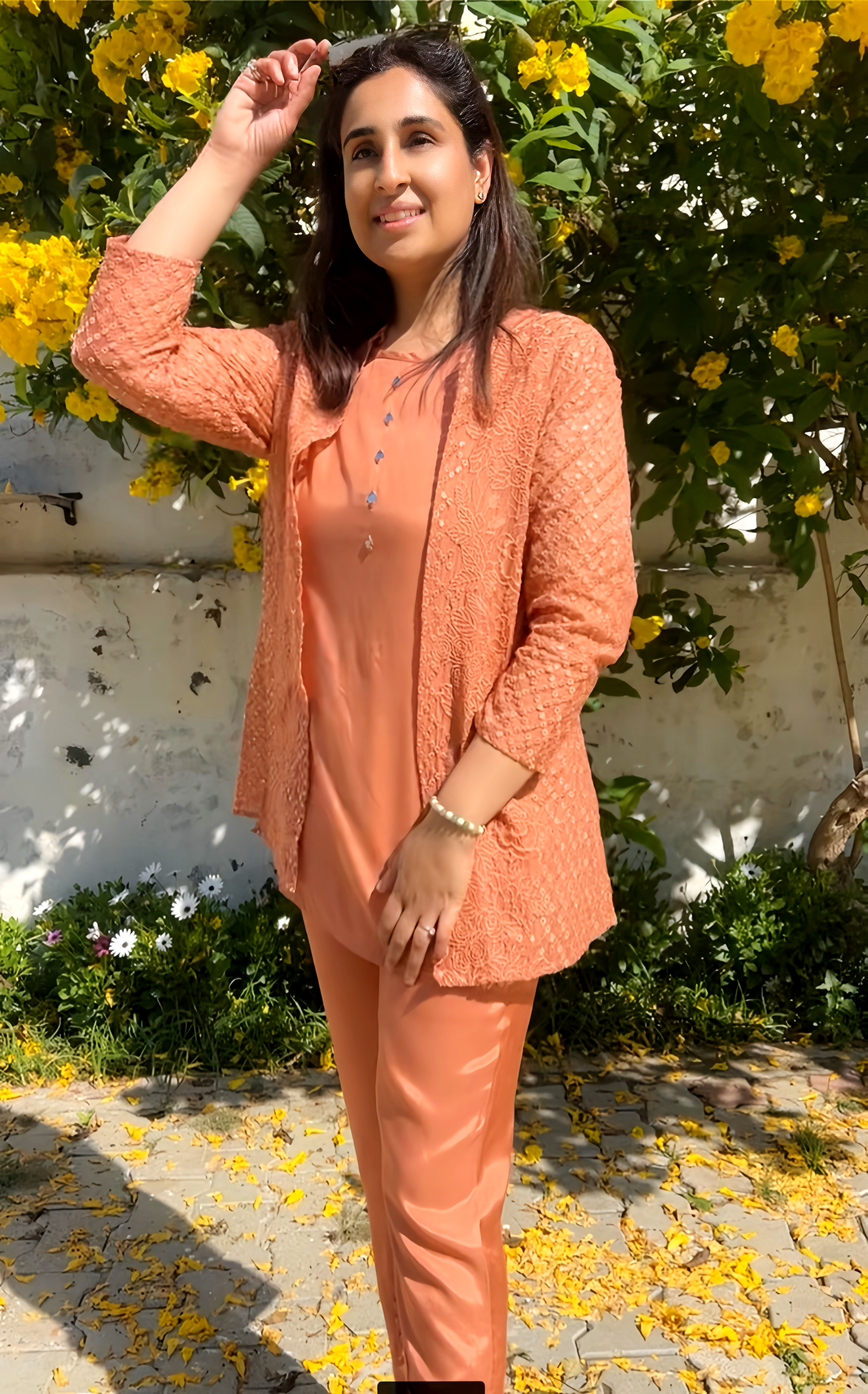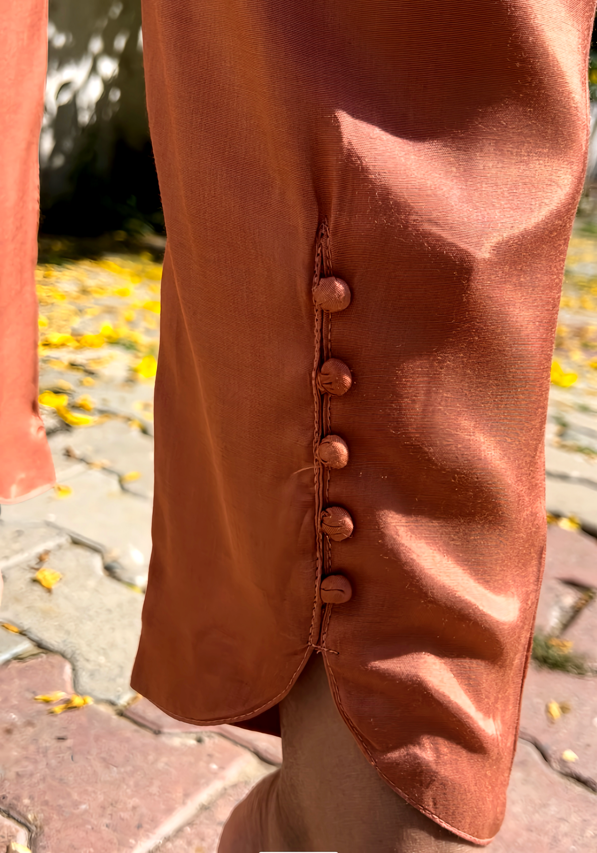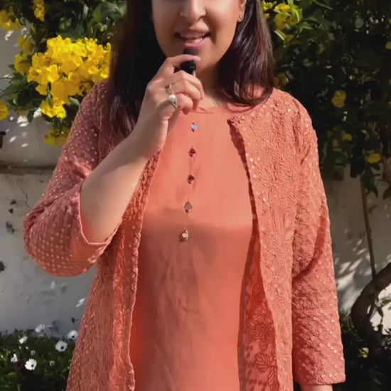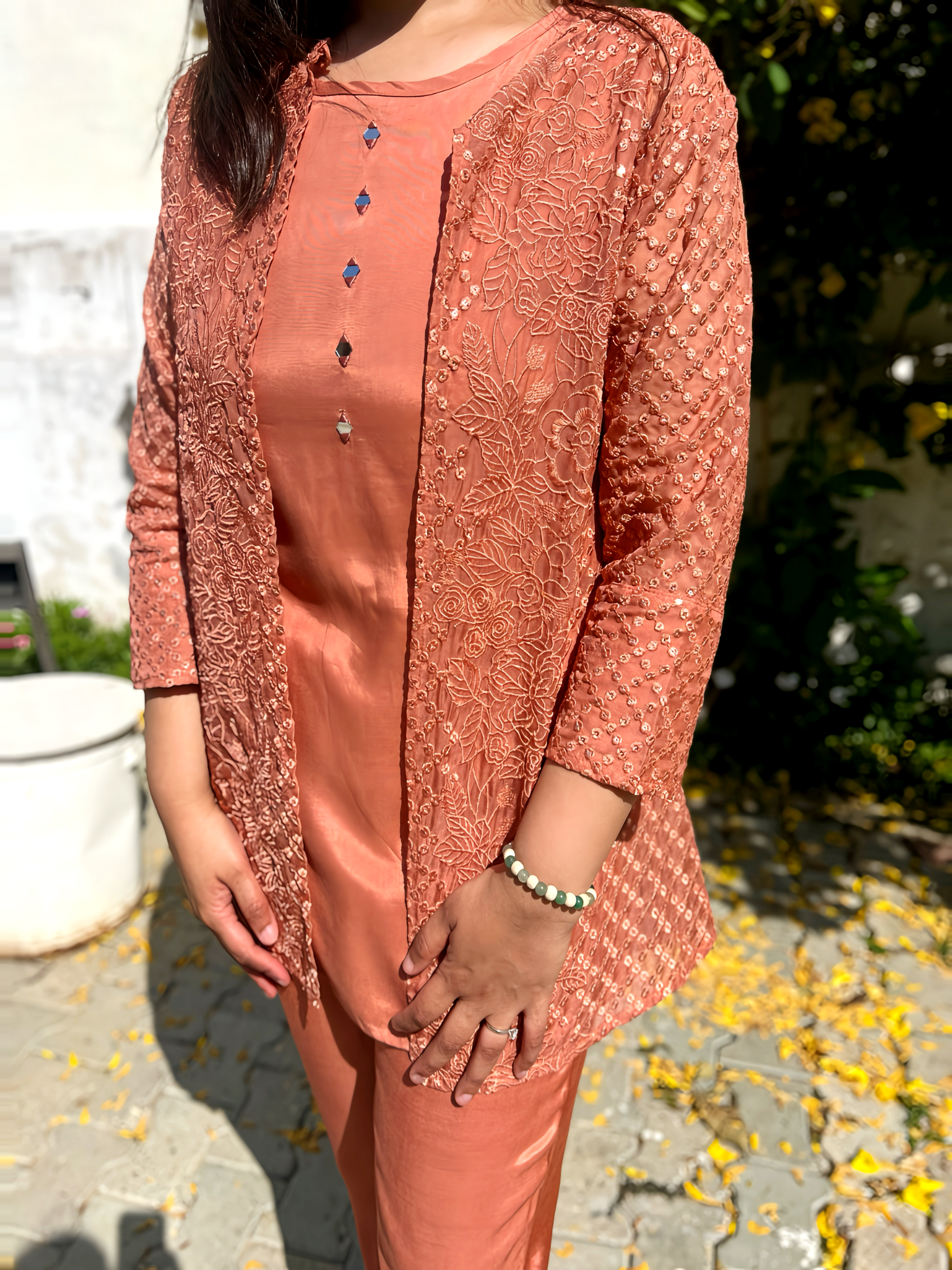 Expertly crafted from smart muslin material, this Stunning Co-Ord Set With Shrug is the perfect combination of style and comfort. The eye-catching mocha rust color adds a touch of elegance, while the stylish apple cut cigarette pants give a flattering silhouette. Complete your look with the included shrug for a versatile and chic ensemble.